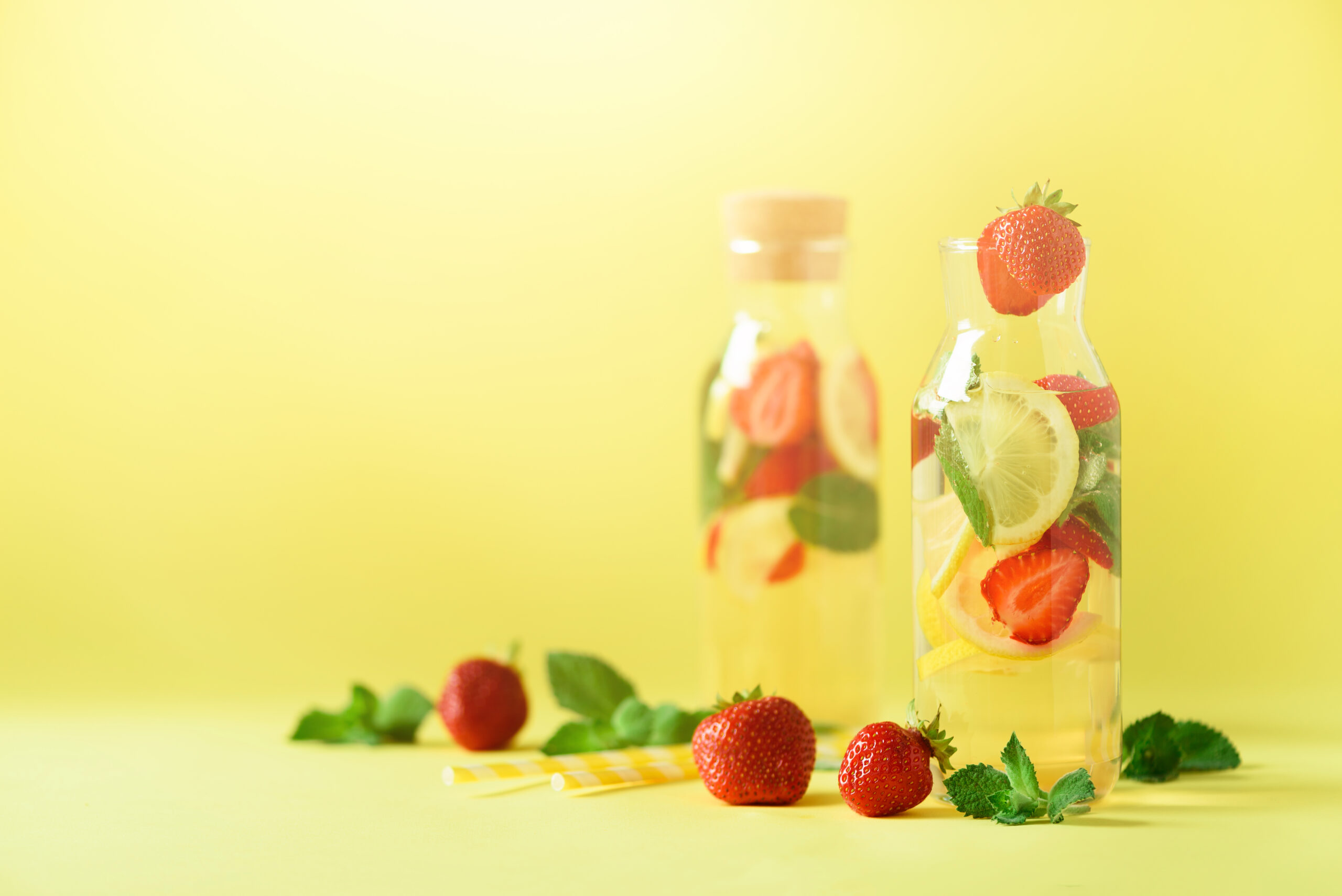 Eau aromatisée rafraîchissante fraise, citron, menthe